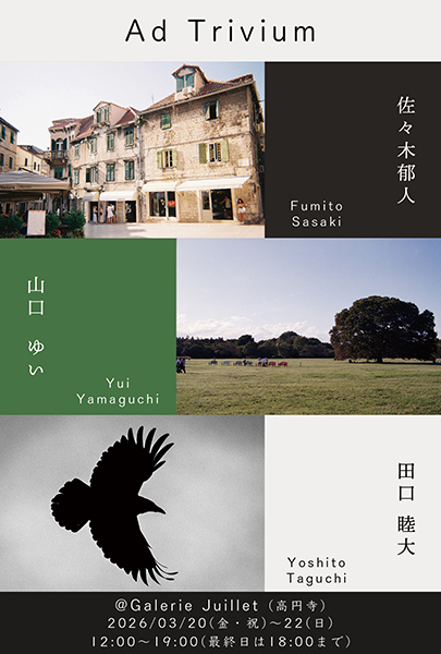 本展は、早稲田大学写真部120期代に運営を担った三名による合同展です。